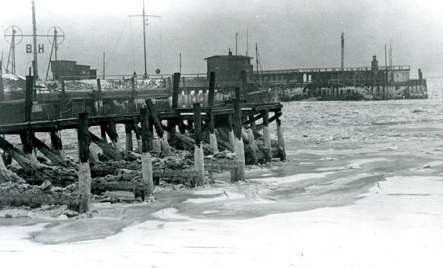 ca. 1924: Blick den alten Hafen im Winter. Das Foto wurde auf der alten Zuwegung zur ehemaligen Seebäderbrücke gemacht.