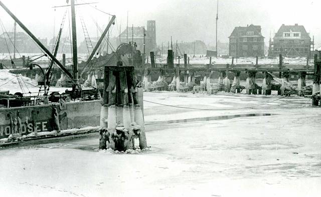 1922: Blick von der Alten Liebe auf den vereisten Alten Hafen