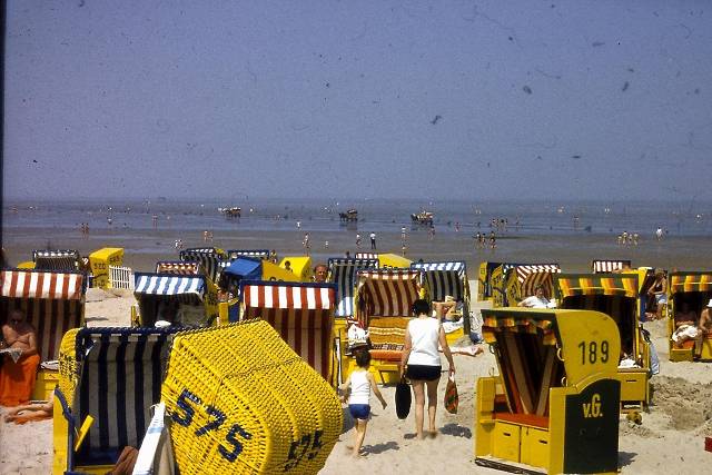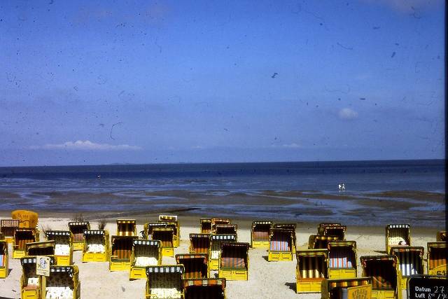 Duhner Strand mit Strandkörben und Wattwagen