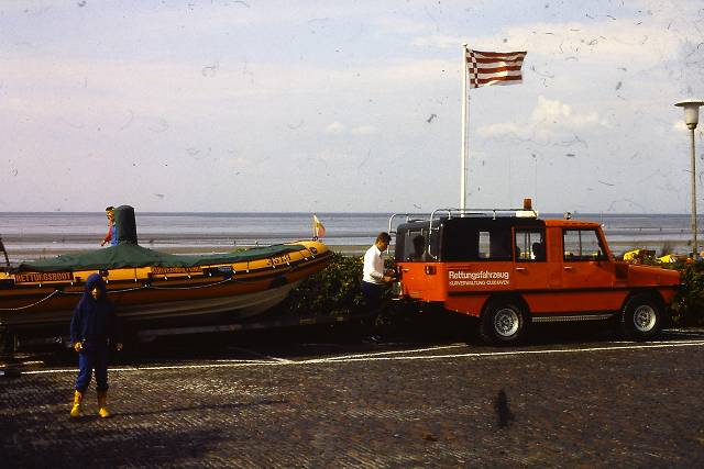 Vorplatz des damaligen Kinos mit dem Amphibienfahrzeug zur Wattrettung.