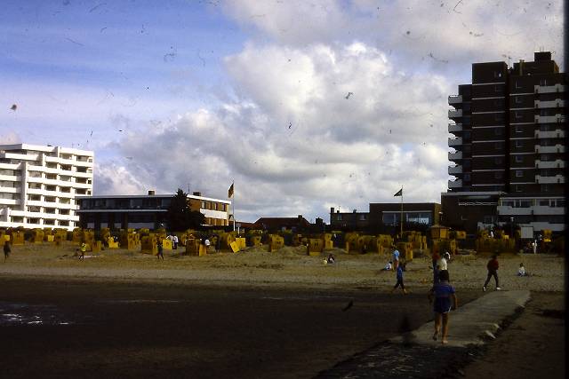 Strandabschnitt zwischen Schwimmbad und Rettungsstation, vom Deich aus gesehen.
