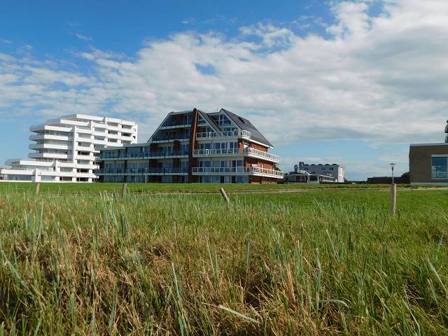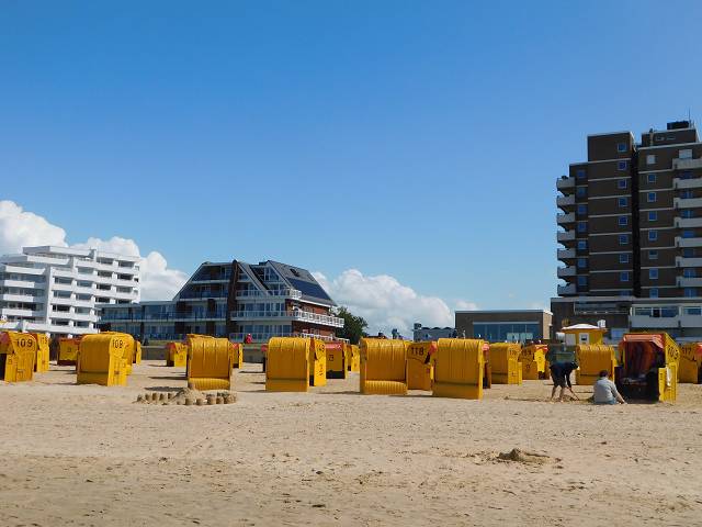 Blick vom Strand auf die Häuser Hanseatic und Seestern