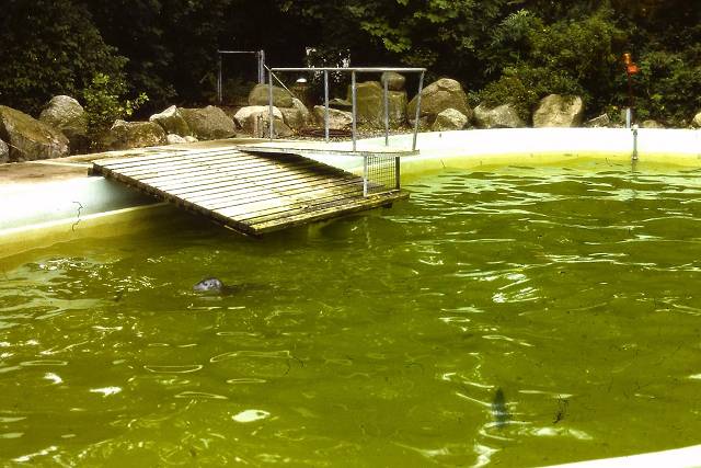 Freibad Steinmarne, in den 1980ern mit historischer Badekarre