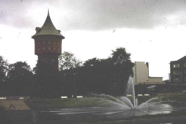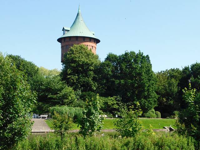 Der Cuxhavener Wasserturm, im Vordergrund der Ritzebütteler Schleusenpriel