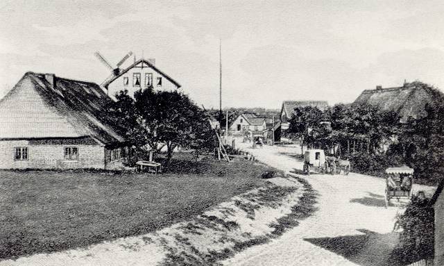 1904: Laut Bildbeschreibung "Blick von Mangels Strandhotel [heute Hotel Kamp] ins Dorf"