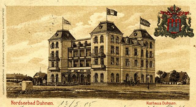 1905: Das 1904 eröffnete Kurhaus Duhnen. Es wurde später zu einer Jugendherberge mit 365 Betten und schließlich 1973 gesprengt. Heute steht dort das Haus Panorama.