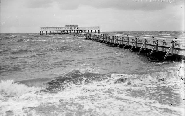 1926: Die Badebrücke Duhnen. Die erste Version davon wurde 1904 eingeweiht aber bereits im Sommer des Jahres bei einem Sturm zerstört. Im folgenden Jahr gab es einen provisorischen Ersatzbau bis 1906 dann eine stabile Brücke erbaut wurde, die 1908 noch einmal ausgebaut wurde. Sie war 200 m lang und 2,5 m breit. Damit die Brücke bei ungünstiger Witterung möglichst wenig Schaden nahm, konnte u.a. das Geländer demontiert und in einem Schuppen auf dem Deich eingelagert werden. Dieser Neubau stand ziemlich genau 40 Jahre bis er 1946 nach dem Zweiten Weltkrieg im Kältewinter in den Öfen der Cuxhavener verheizt wurde.
