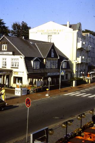 Blick vom Duhner Buernhus auf das Hotel zur Post und das Hotel am Meer